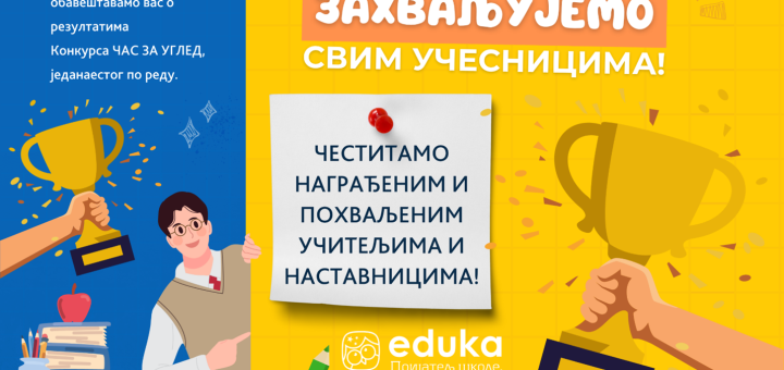 Радмила Удовчић и Добрила Панић-Рудић, наставнице српског језика у нашој школи, су учествовале на традиционалном Едукином конкурсу “Час за углед”. Конкурс је био отворен за најбоље иновативне припреме угледних часова у основној и средњој...